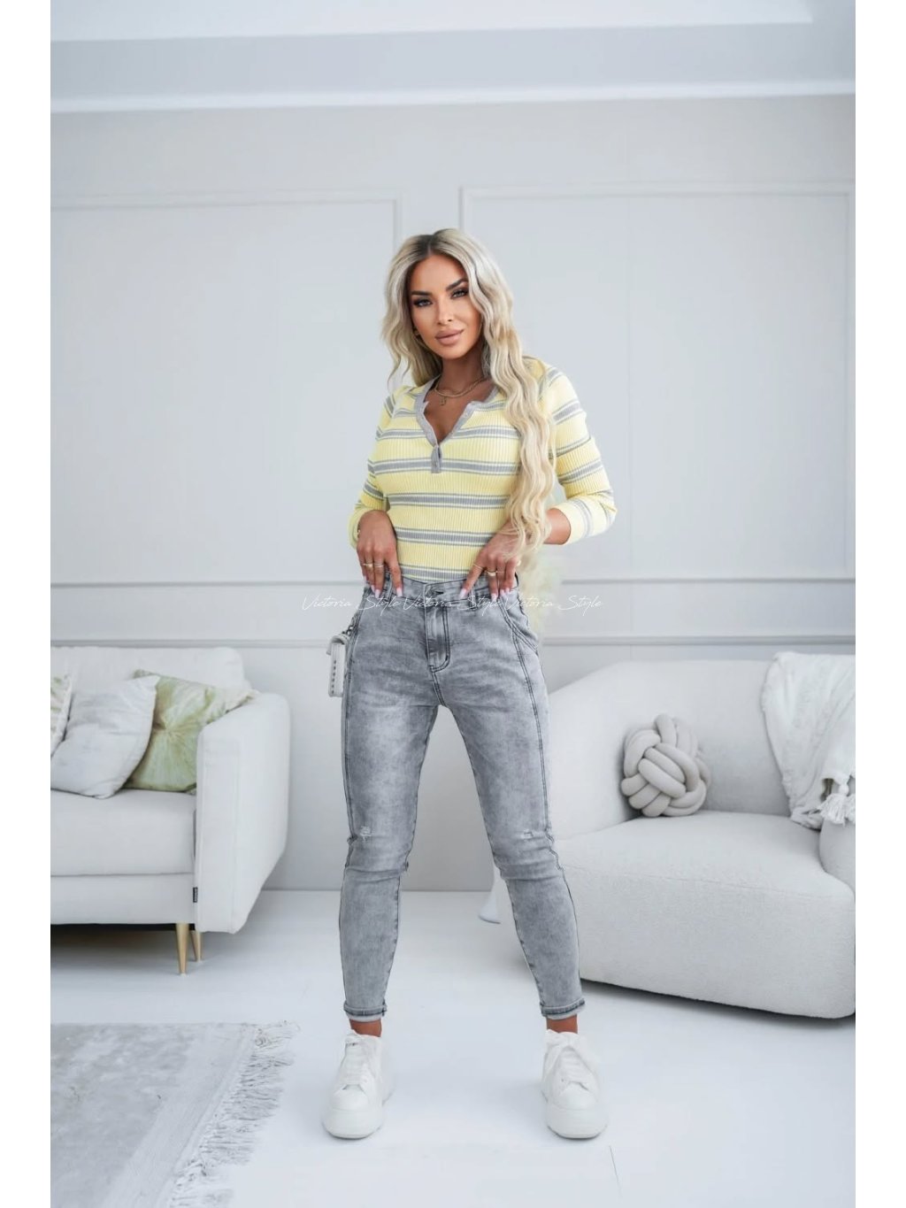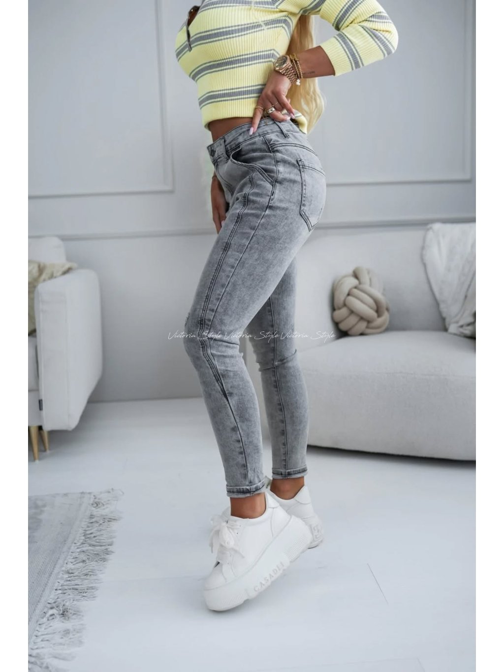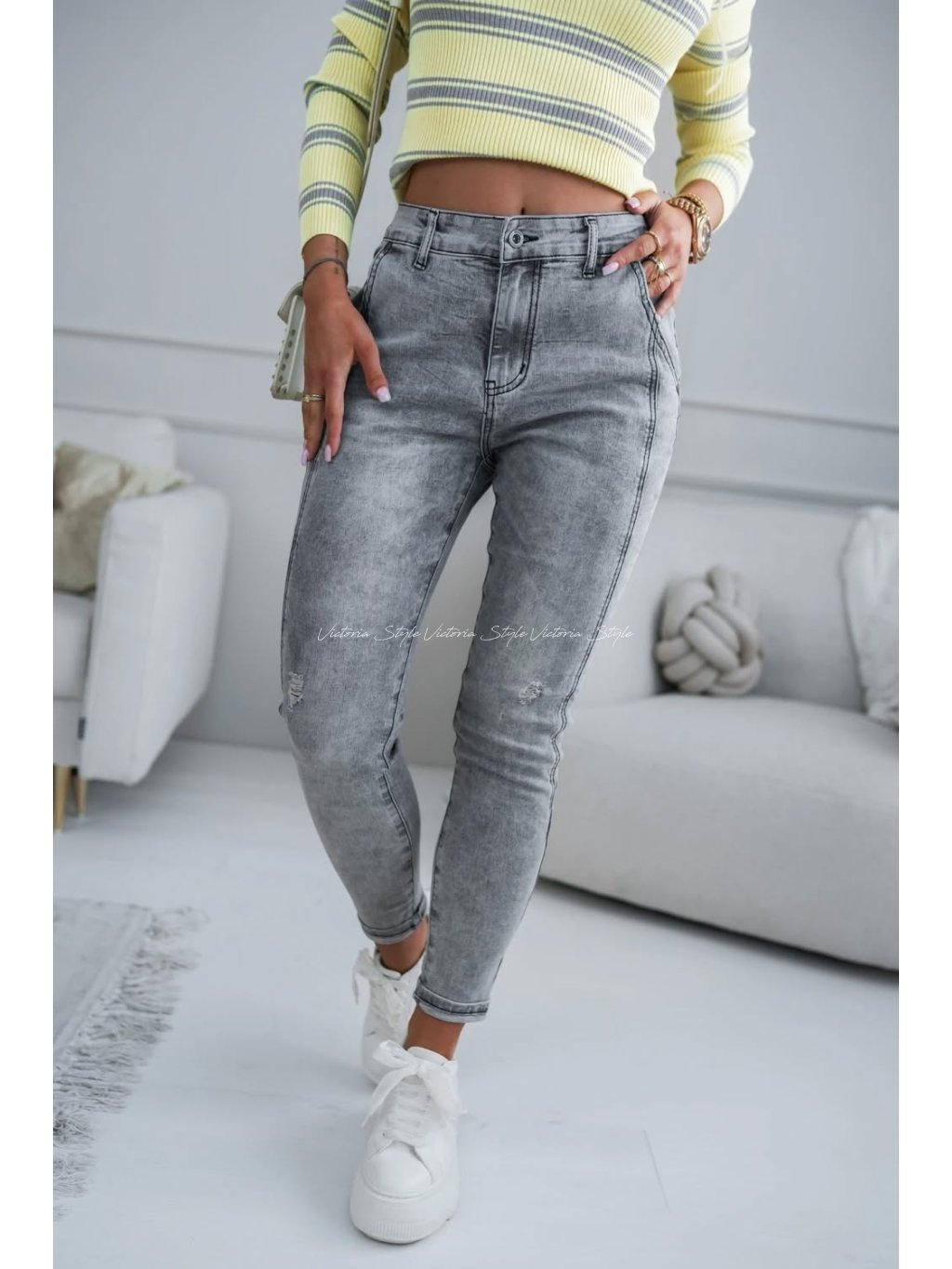 Šedé džíny jsou skvělým základem, pro experimentování s doplňky i barvami. Vytvoříte s nimi spoustu variant outfitů. Mírně trhané džíny M.Sara v krásné barvě, slibují osobitý a vyjimečný vzhled. Atraktivní střih nabízí pohodlí a styl. Velikosti: Pružné