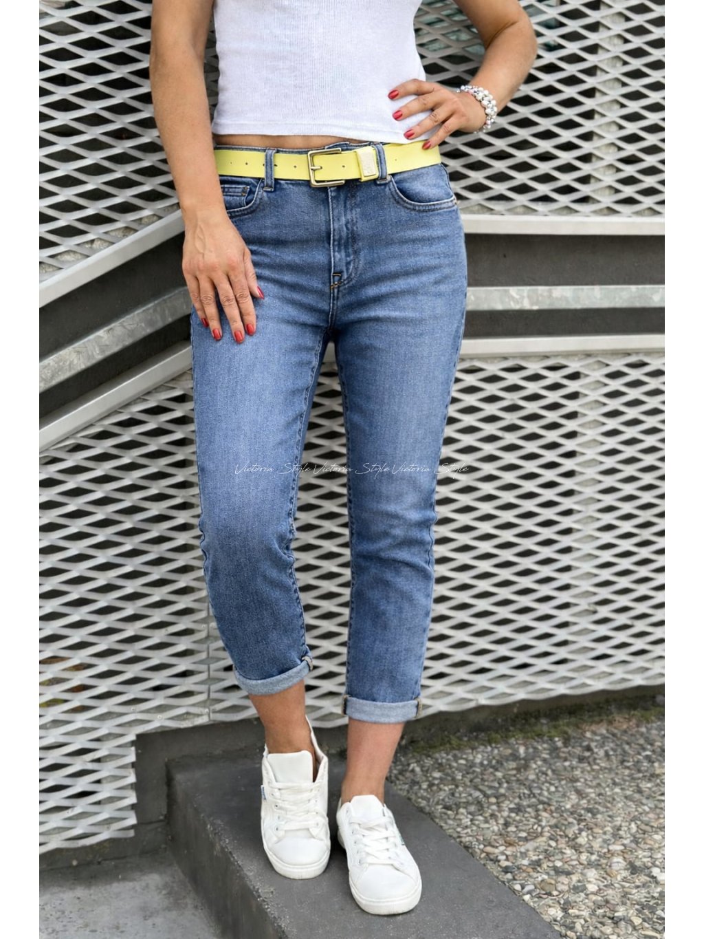 Modré džíny jsou klasika, která se hodí ke všemu. Vytvoříš s nimi spoustu variant outfitů. Máslové džíny M.Sara v krásné modré barvě s páskem. Snížené zadní kapsy. Velikosti: Pružné