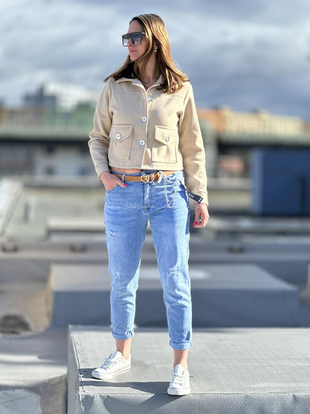 Modré džíny jsou klasika, která se hodí ke všemu. Vytvoříš s nimi spoustu variant outfitů. Máslové džíny Mom Fit s páskem. Snížené zadní kapsy. Velikosti: Pružné.