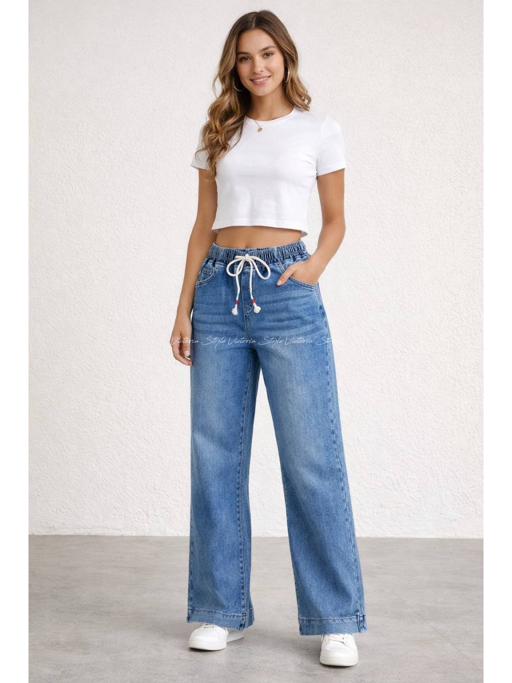 Modré džíny jsou klasika, která se hodí ke všemu. Vytvoříš s nimi spoustu variant outfitů. Džíny Moon, letos velice moderní mírně širší nohavice.  Snížené zadní kapsy. Zdobené šňůrky. Spodní část nohavic v širším lemu. Velikost: