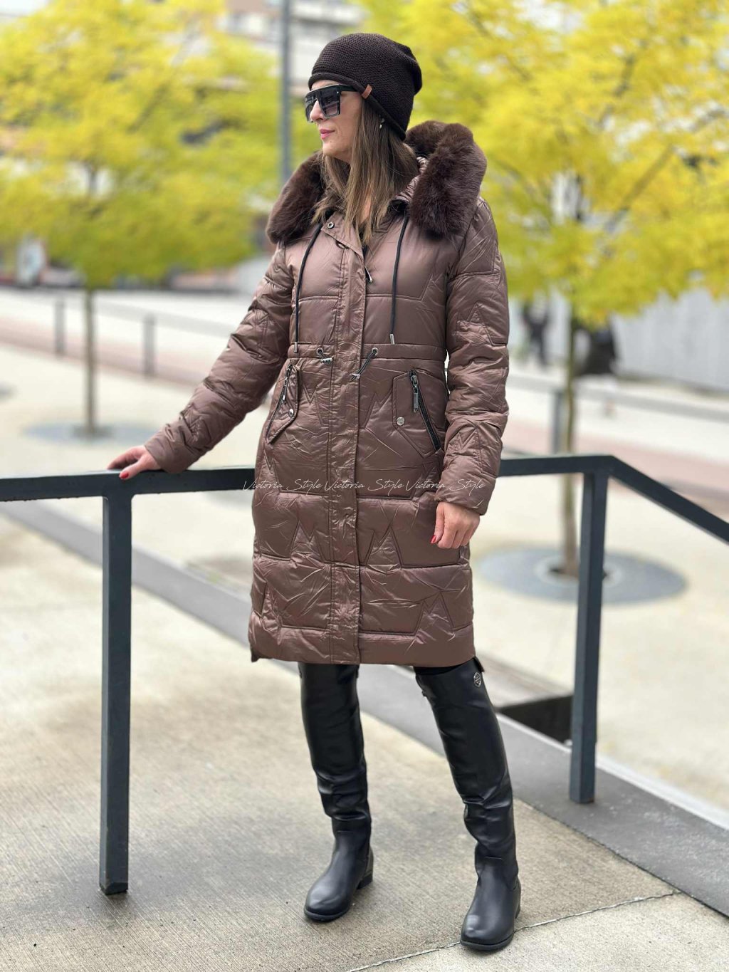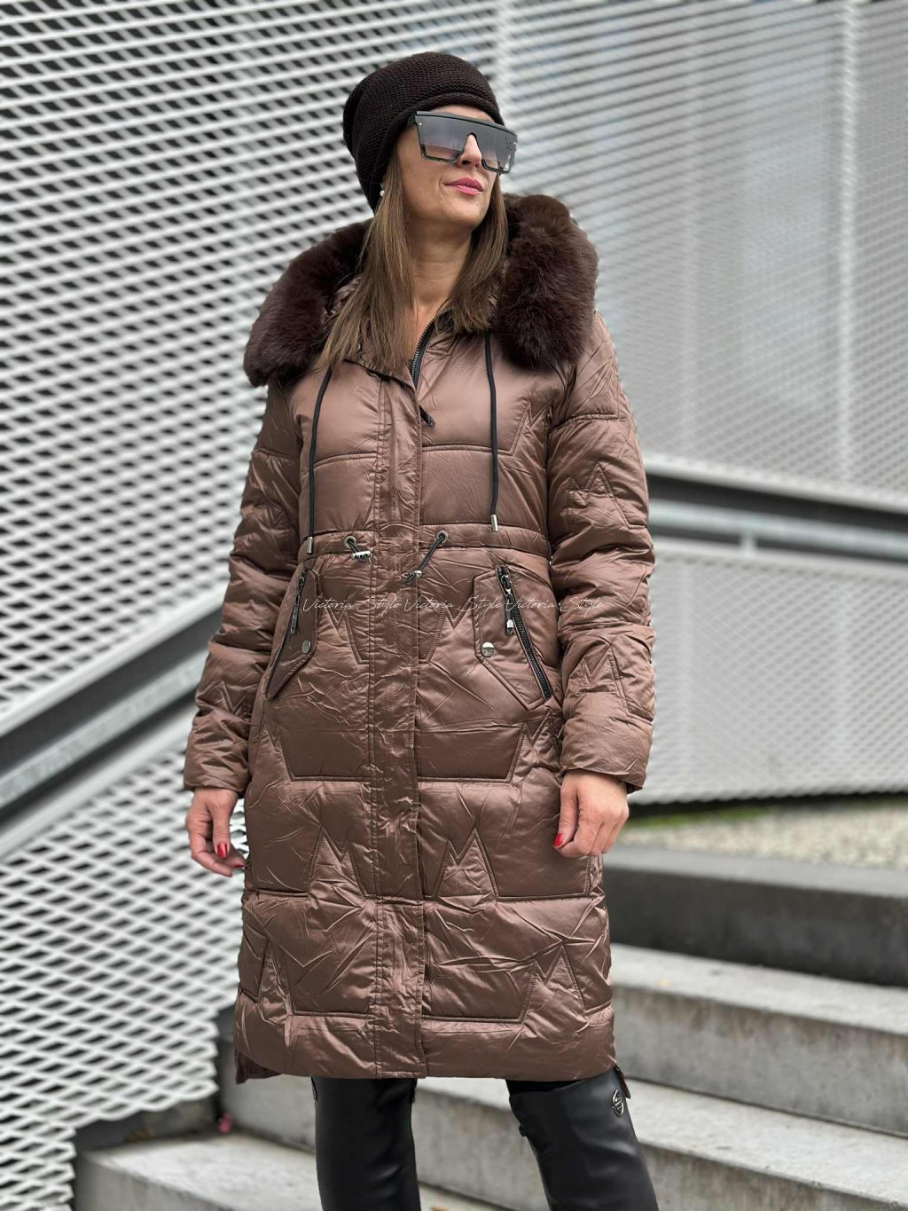 Dokonalé řešení na zimní období. Slušivý střih a moderní design. Kabátková bunda je nepostradatelnou součástí šatníku každé ženy. Prošívaný design, s odnímatelným kožíškem na kapuci, praktické úpletové rukávy, šité přední kapsy, v pase na stažení. Šitá vynikající firmou S.WEST