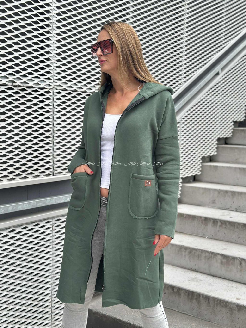 Perfektní volba pro každou příležitost. Pohodlná a praktická kabátková mikina Ruby kterou lze kombinovat s mnoha styly a typy oděvů. Moderní mikina je nepostradatelnou součástí šatníku každé ženy. Delší mikina s kapucí, zdobená nášivkou. Šité přední kulaté kapsy. Velikost: Univerzální: Hrudník 98 - 120 cm, rukáv 62 cm, délka 105 cm. Materiál: Hrubší bavlna, podšitá fleece, elastan