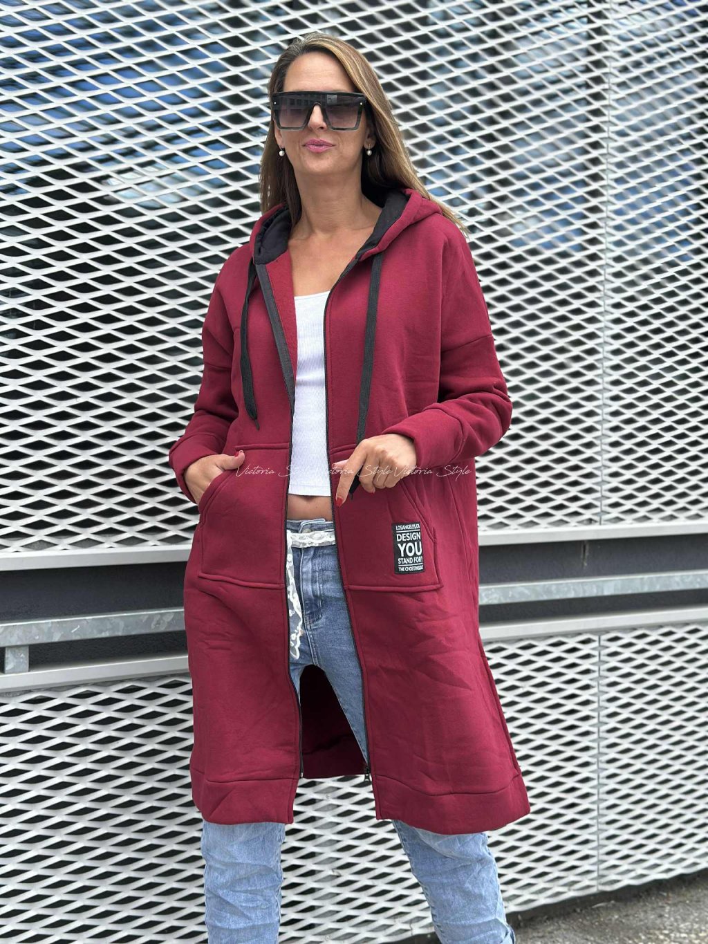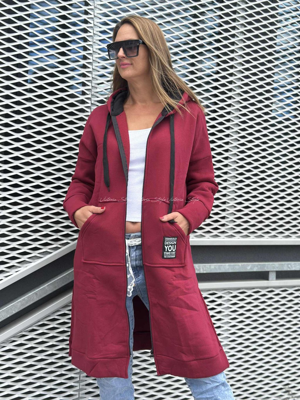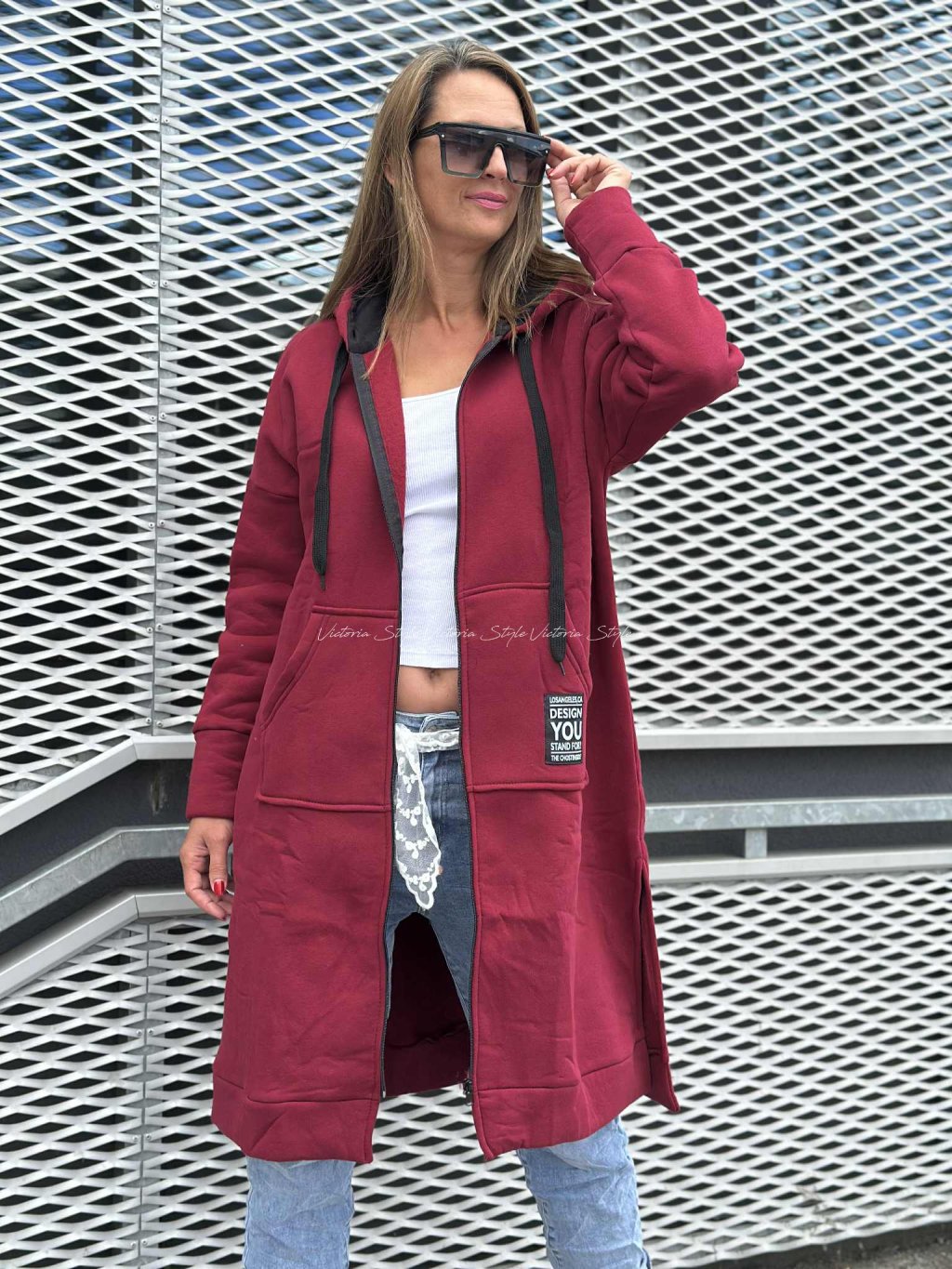 Perfektní volba pro každou příležitost. Pohodlná a praktická kabátková mikina Turaya, kterou lze kombinovat s mnoha styly a typy oděvů. Pořiďte si neokoukanou mikinu. Moderní mikina je nepostradatelnou součástí šatníku každé ženy. Delší mikina s kapucí, zdobená nášivkou. Šitá přední klokánková kapsa. Velikost: Univerzální: Hrudník 110 - 140 cm, rukáv 62 cm, na bocích rozparek, délka 105 cm. Materiál: Hrubší bavlna, podšitá fleece, elastan