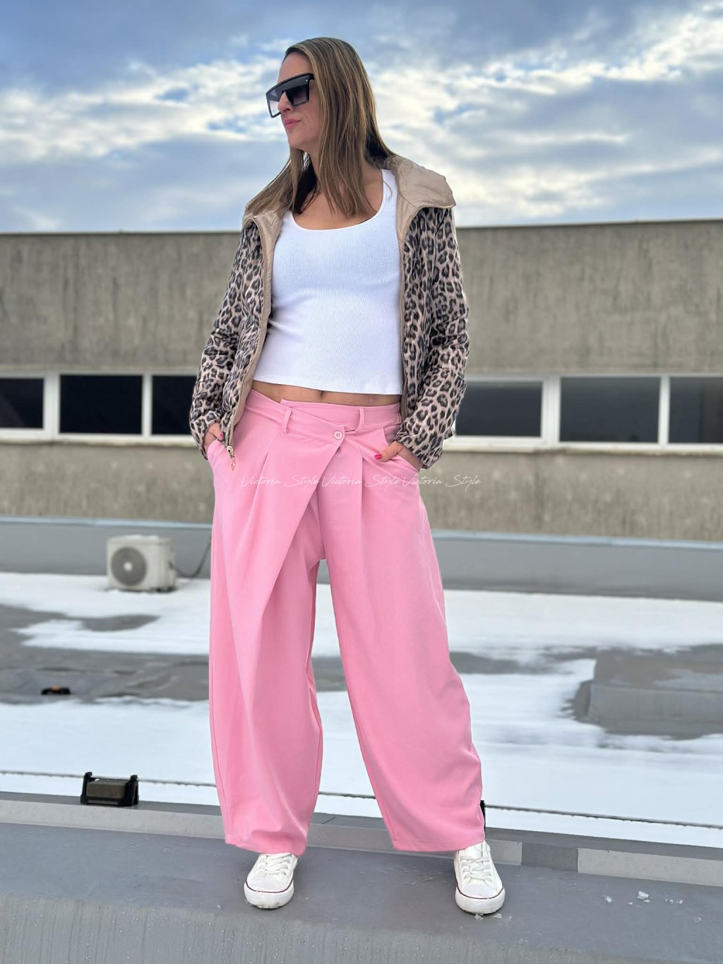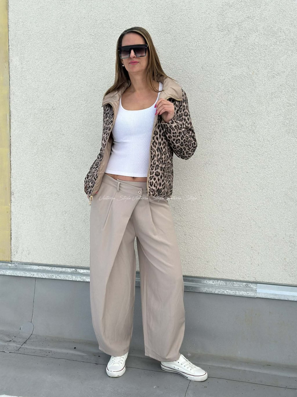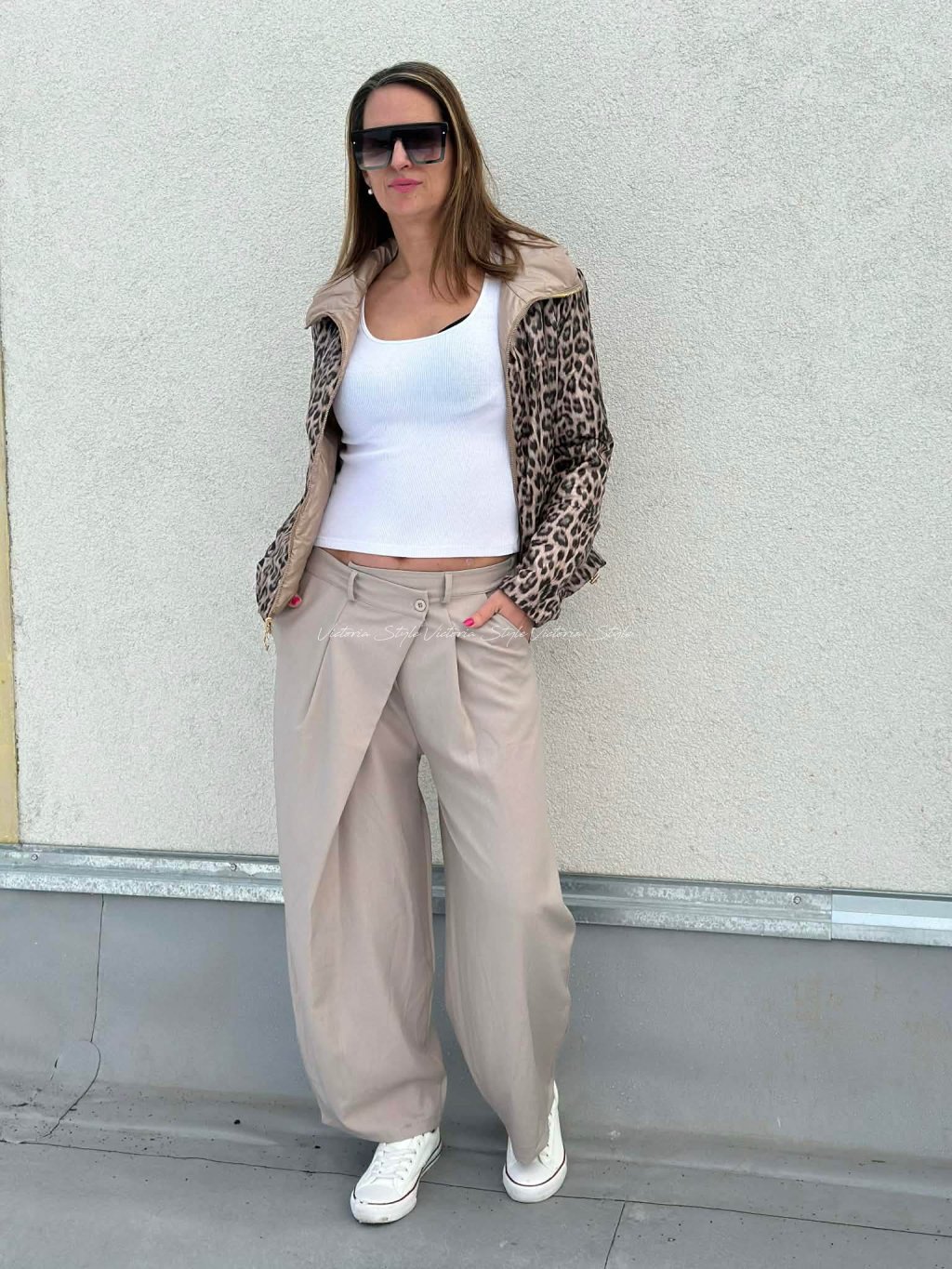Kalhoty s promyšleným designem, šité v ležérní eleganci. Kombinace pohodlí a stylu. Kalhoty Chrisi jako základ outfitu, přední část v překříženém střihu. Sladitelné ke všem outfitum. Velikost: Obvod pupek 90 - 100 cm, boky 100 - 125 cm, délka 100 cm. Materiál: Gramážově vynikající polyamid, elastan.