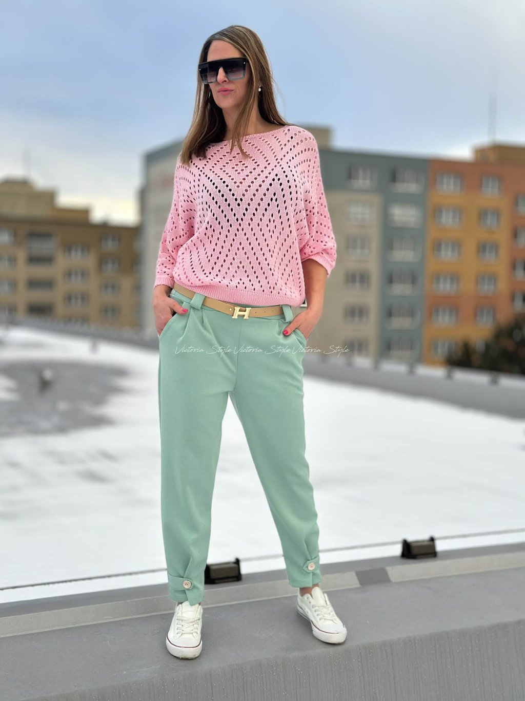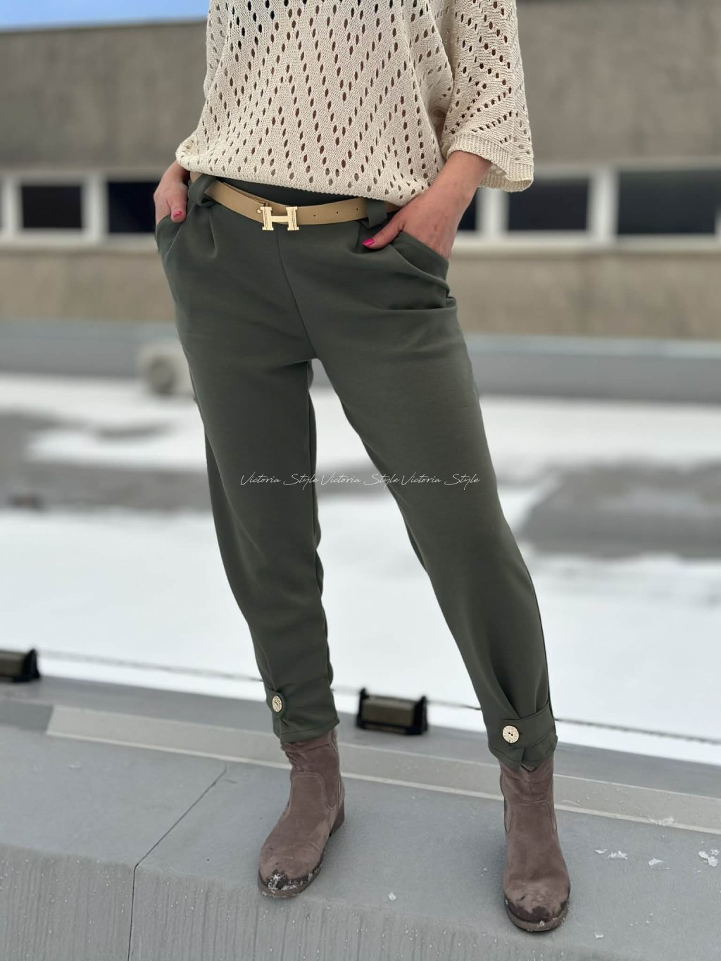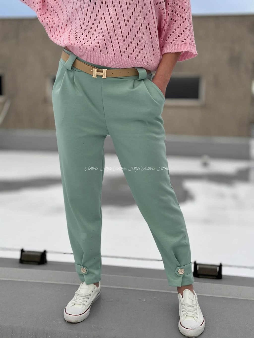 Kombinace pohodlí a stylu. Naprosto luxusní kalhoty Kamar s páskem, šité v ležérní eleganci. Spodní část zdobená knoflíčkem. Velikost: Obvod pupek 86 - 108 cm, boky 100 - 130 cm, délka 98 cm. V pase na elastickou gumu. Sedí na vel S, M, L, XL. Materiál: Gramážově hrubší materiál, bavlna, viskoza, elastan. Tkz máslový materiál.