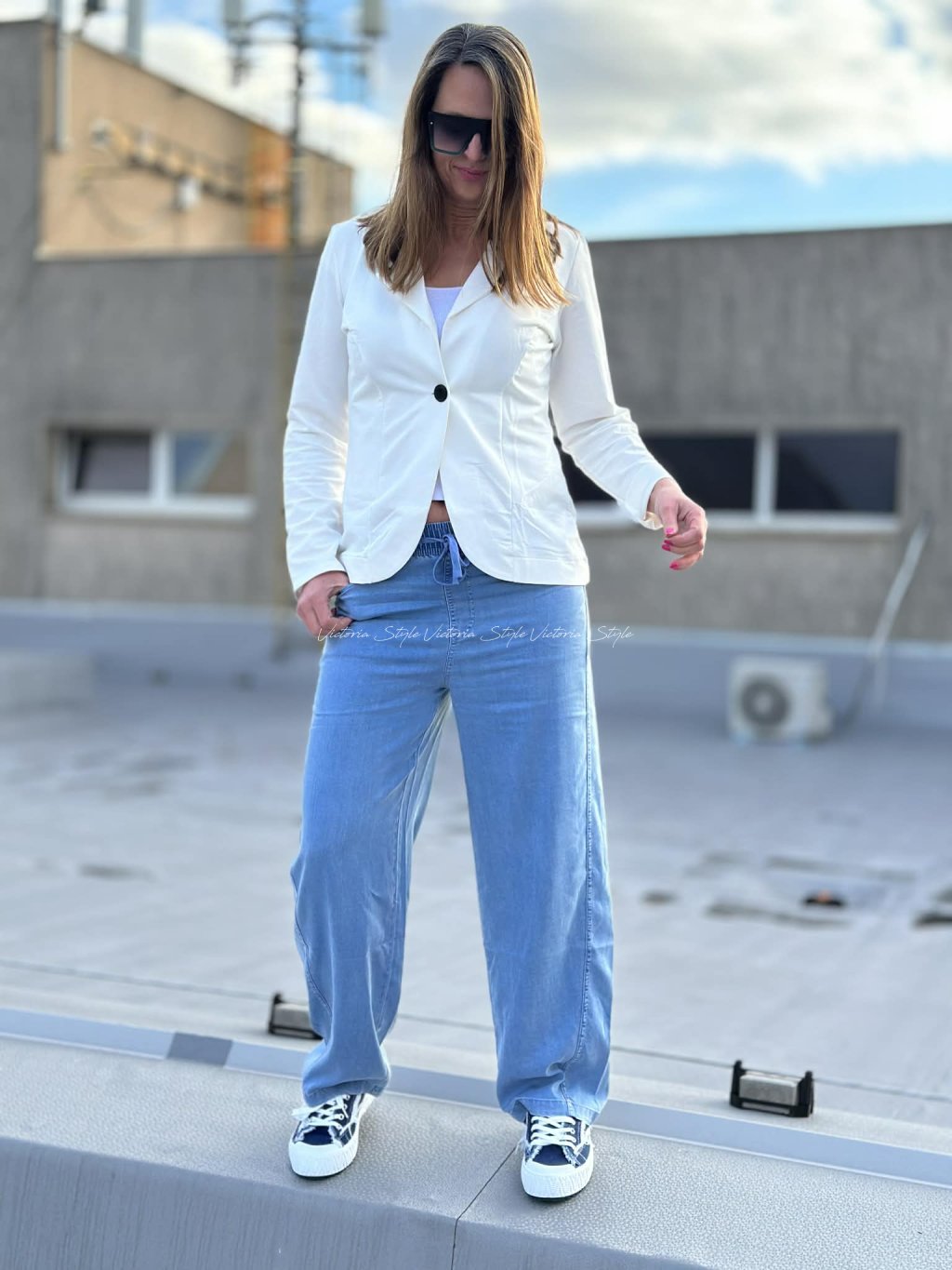 Udělejte si místo ve skříni pro kalhoty Selma, které dodají vašemu outfitu šmrnc. Pohodlné kalhoty v imitaci světlejší rifloviny, šité v letos velice moderním balónovém střihu. Vytvoříš s nimi spoustu variant outfitů. Velikost: V pase na gumu