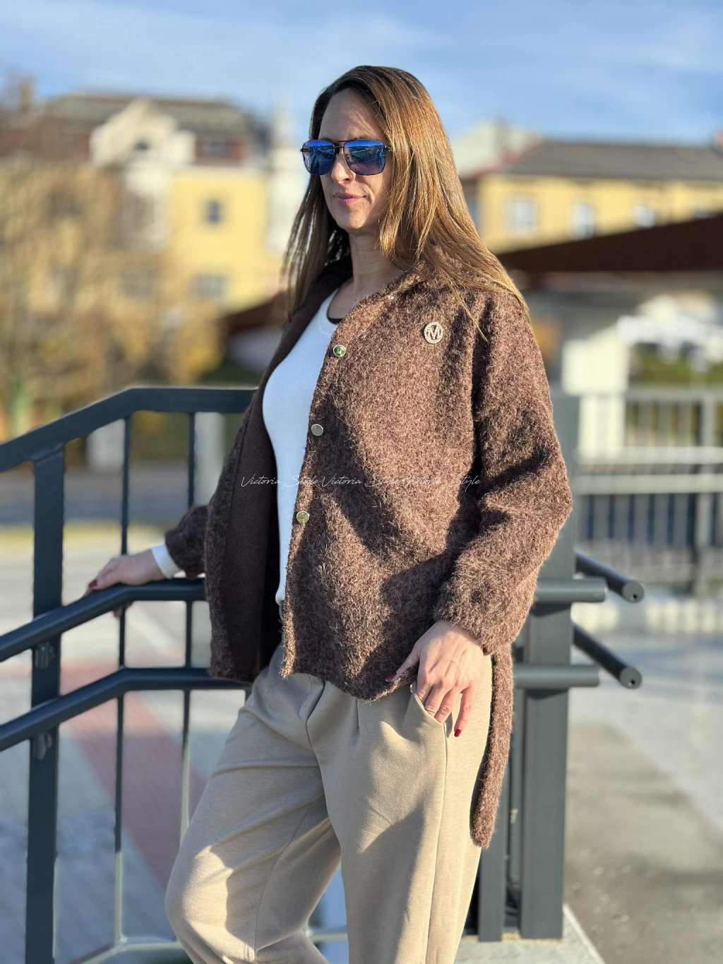 Košile, jako jedna z nejkomfortnějších kousků, které máte v šatníku. Asymetrická košile Tahereh, ideální pro každý den i příležitost, šitá v ležérním střihu . Hrubší košilová bunda s kapucí, zdobená třpytkovou ozdobou. Perfektní teplejší materiál. Vhodný ke všem outfitum. Velikost: Hrudník 94 - 106 cm, rukáv 58 cm, zakončen úpletovou gumou, délka 66 - 88 cm, zadní díl v prodloužení. Materiál: Gramážově hrubší, chlupaťounký akryl, polyester, viskoza. Ozdobnou sponu, lze odepnout.