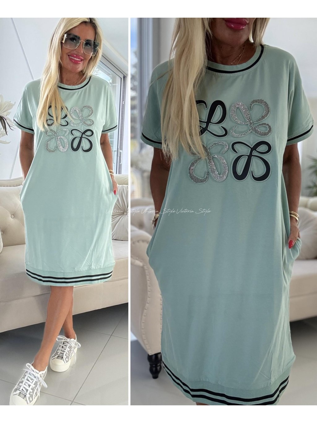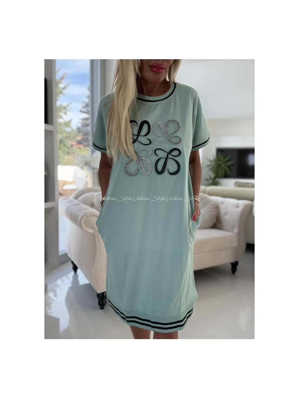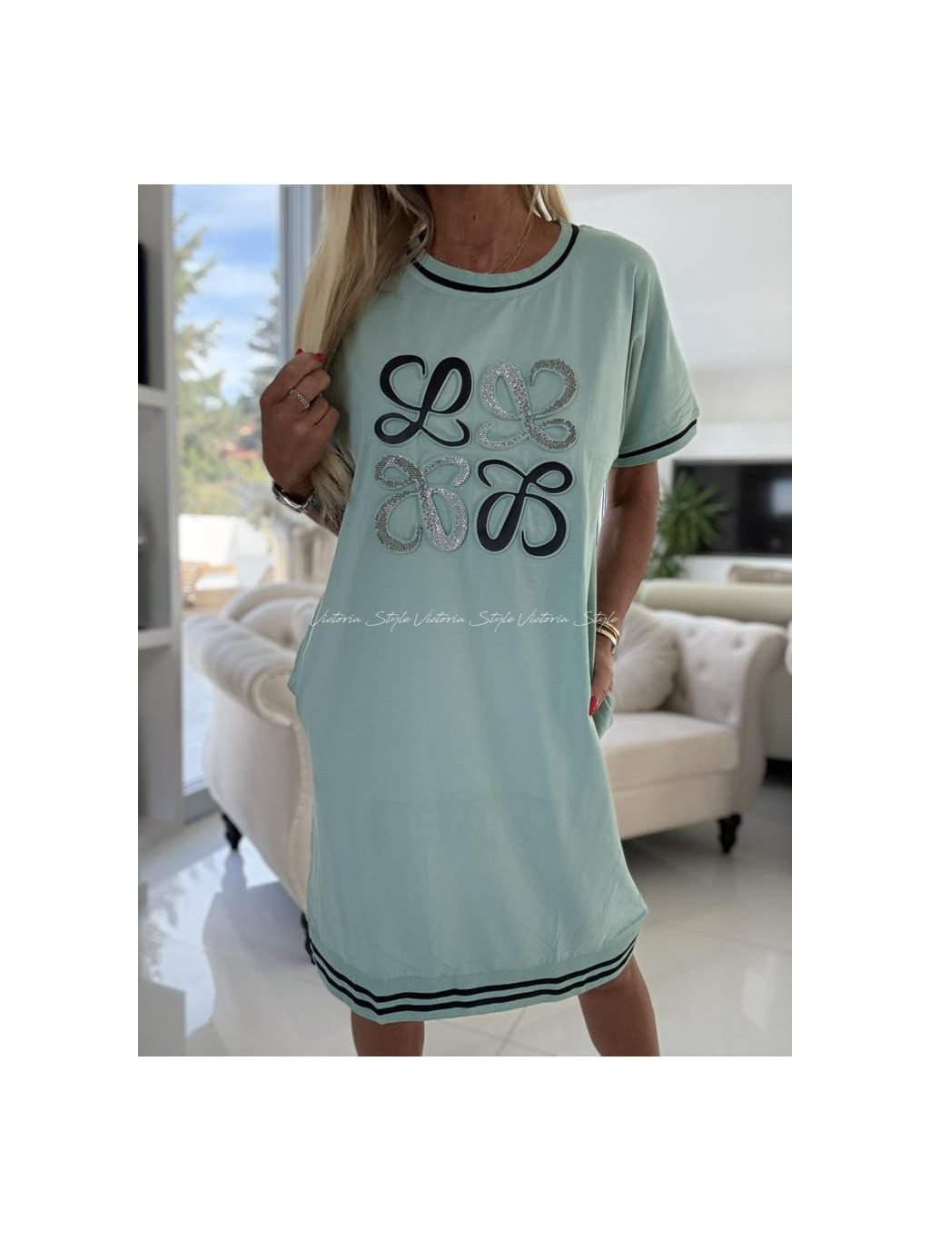 Pohodlná šatová tunika, pro každý den, ať už je jakýkoliv. Šitá z velice kvalitního materiálu. Šatovka Basma Rue Paris, znak vykládaný třpytkovými kamínky.  Velikost: Uni, hrudník 95 - 120 cm, délka cca 95 cm. Šité přední kapsy. Spodní lem v úpletové gumě. Materiál: Velice kvalitní bavlna, elastan
