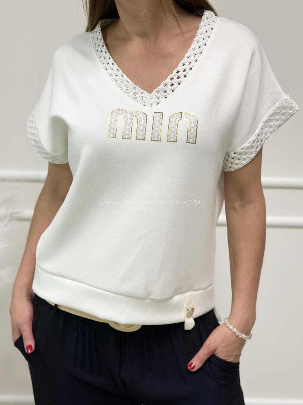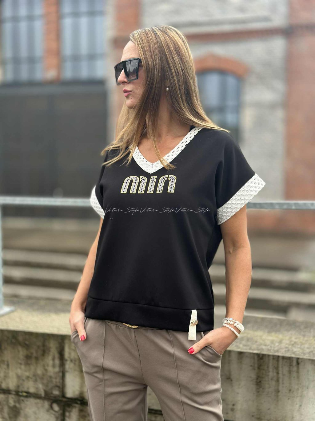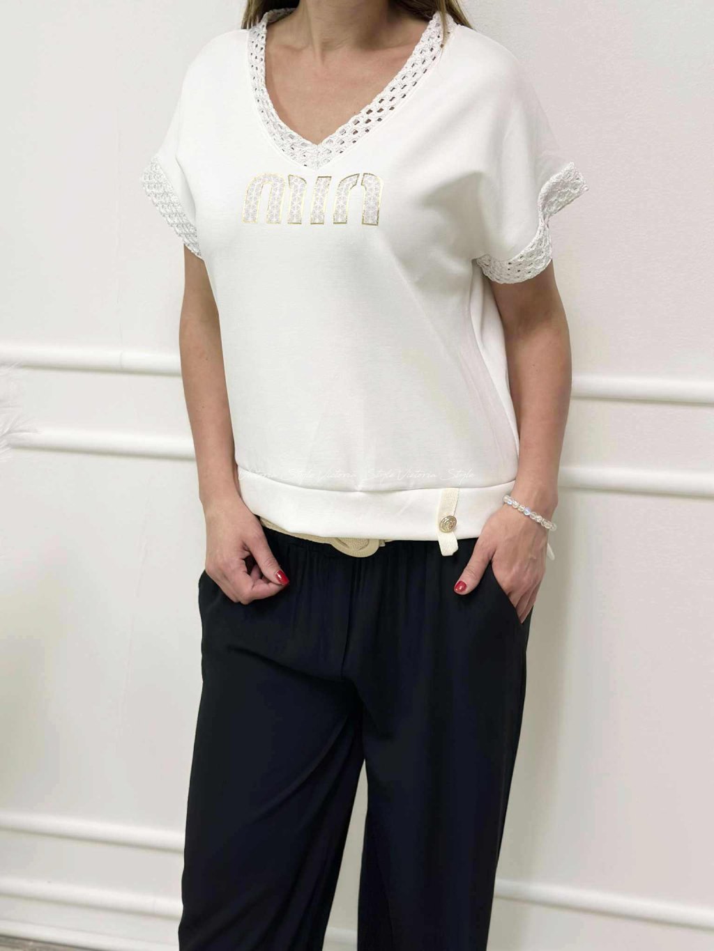 Triko je základ pro každý den. Vhodný ke všem outfitum. Triko Dorith Rue Paris v klasickém střihu, zdobené vyšívanou krajkou. Velikost: Univerzální hrudník 96 - 108 cm, délka 63 cm. Materiál: Hrubší mikinová bavlna, elastan. Příjemný na omak