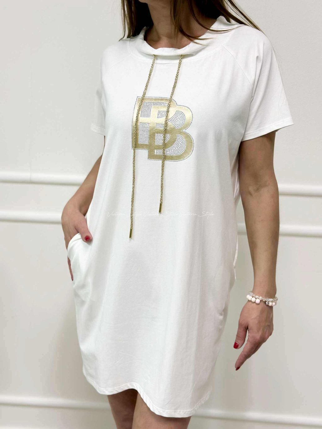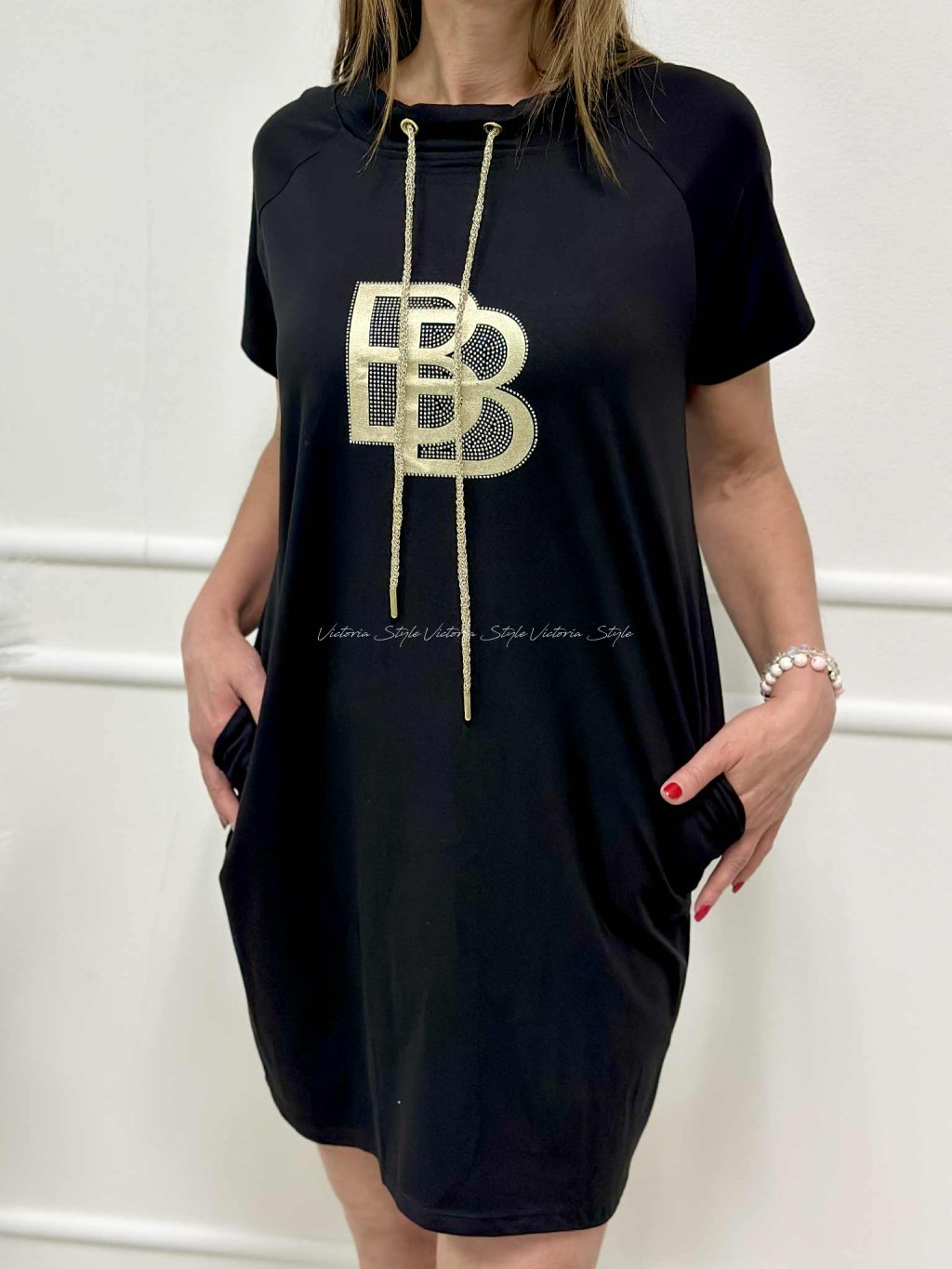 Pohodlná šatová tunika, pro každý den, ať už je jakýkoliv. Šatovka Berenike Rue Paris, znak vykládaný třpytkovými kamínky.  Velikost: Uni, hrudník 98 - 120 cm, délka cca 95 cm. Šité přední kapsy. Materiál: Kvalitní bavlna, elastan